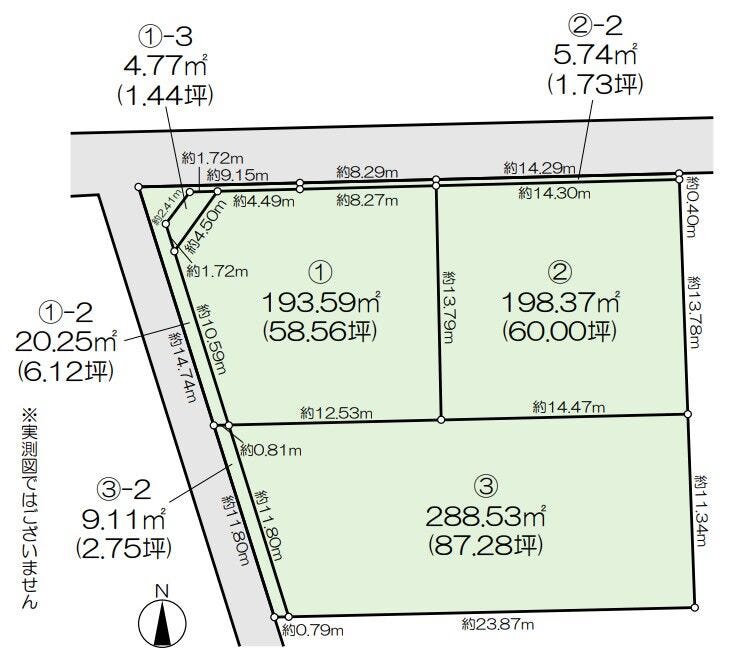 | 土地面積 | 公198.37㎡(60.00坪) | 接道 | 北側幅 約3.5m |